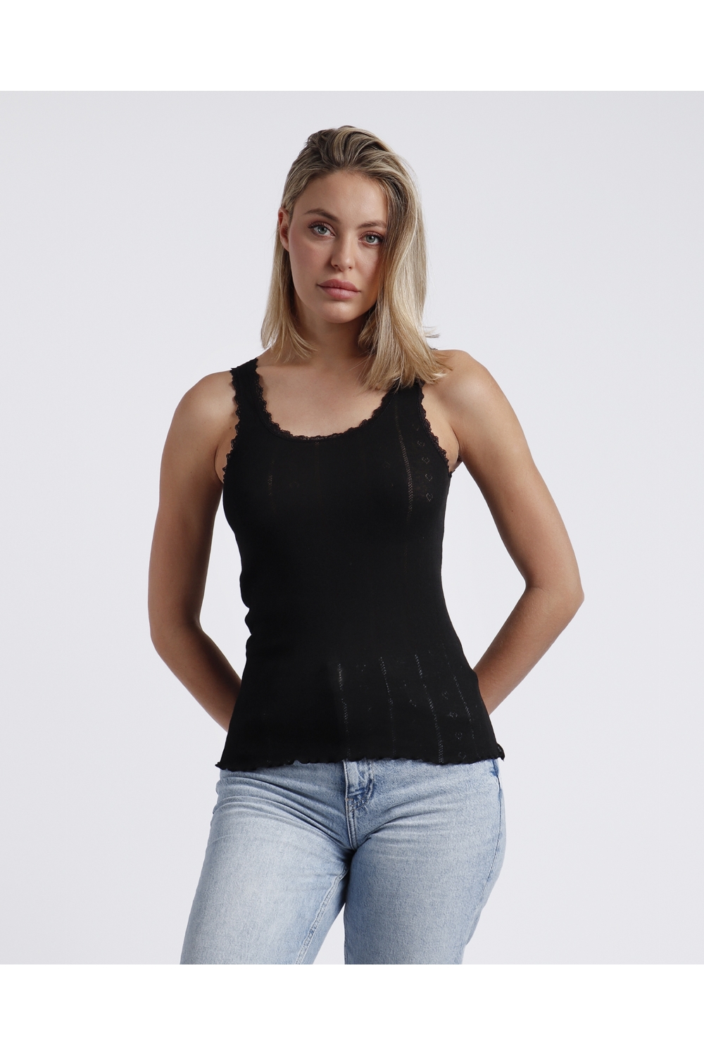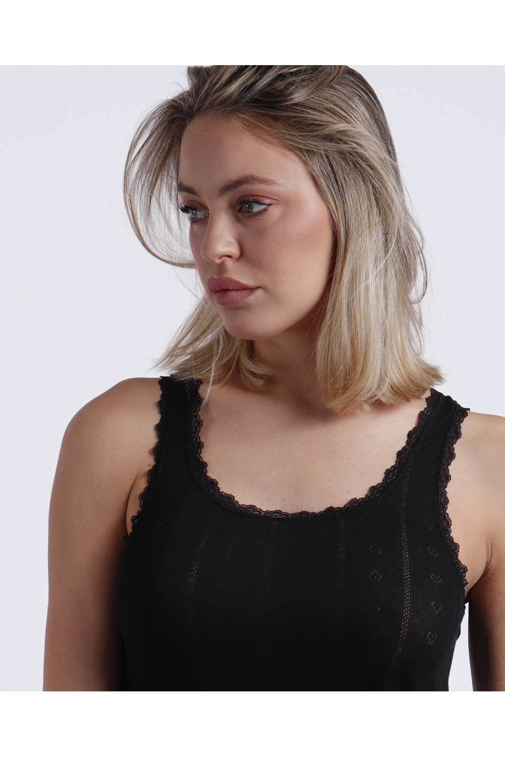 * Camiseta canalé, de punto, de tirantes y con escote redondo con detalles de puntilla lencera.