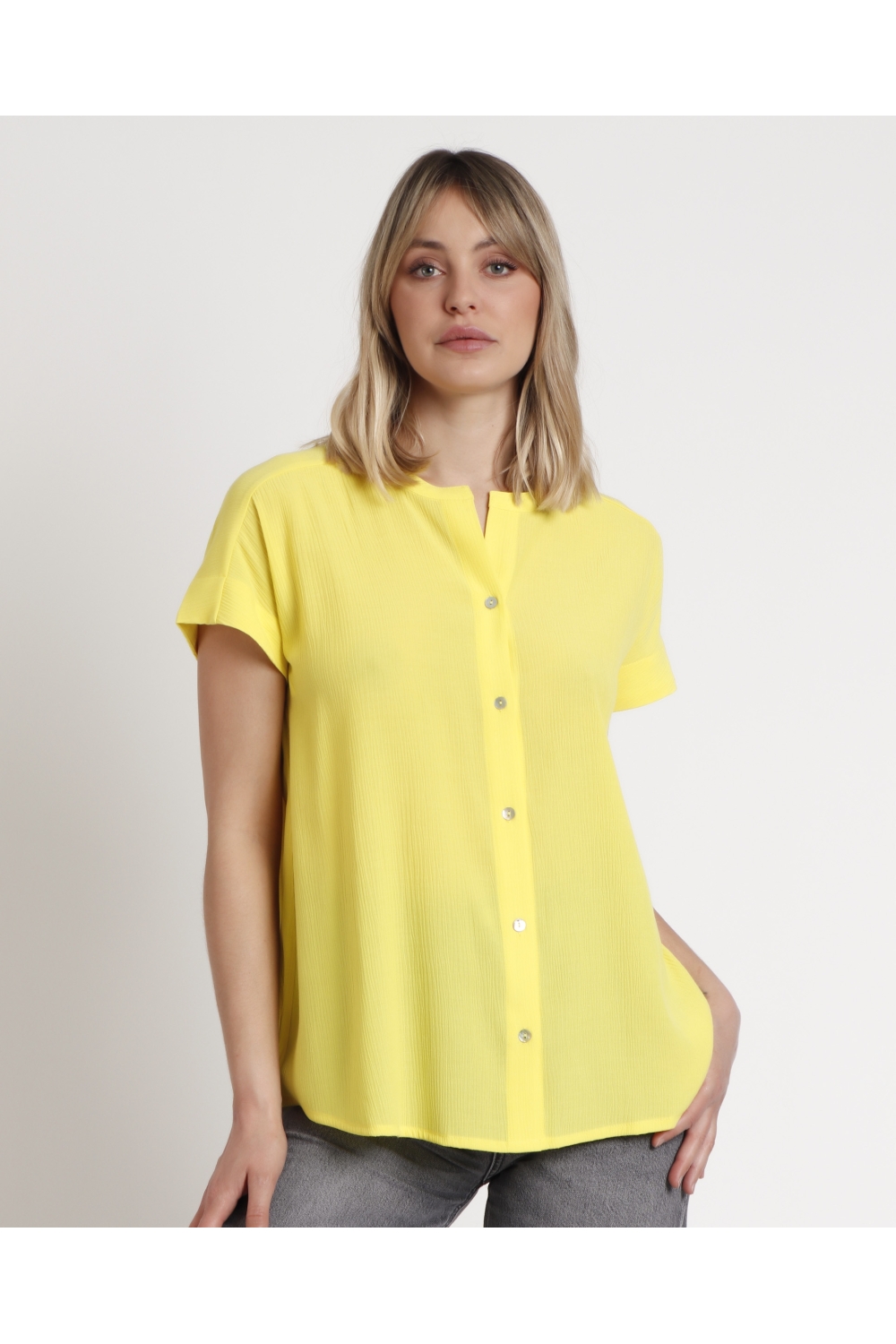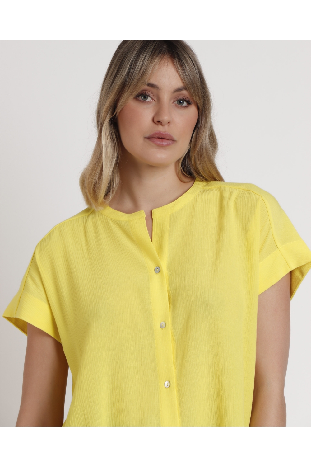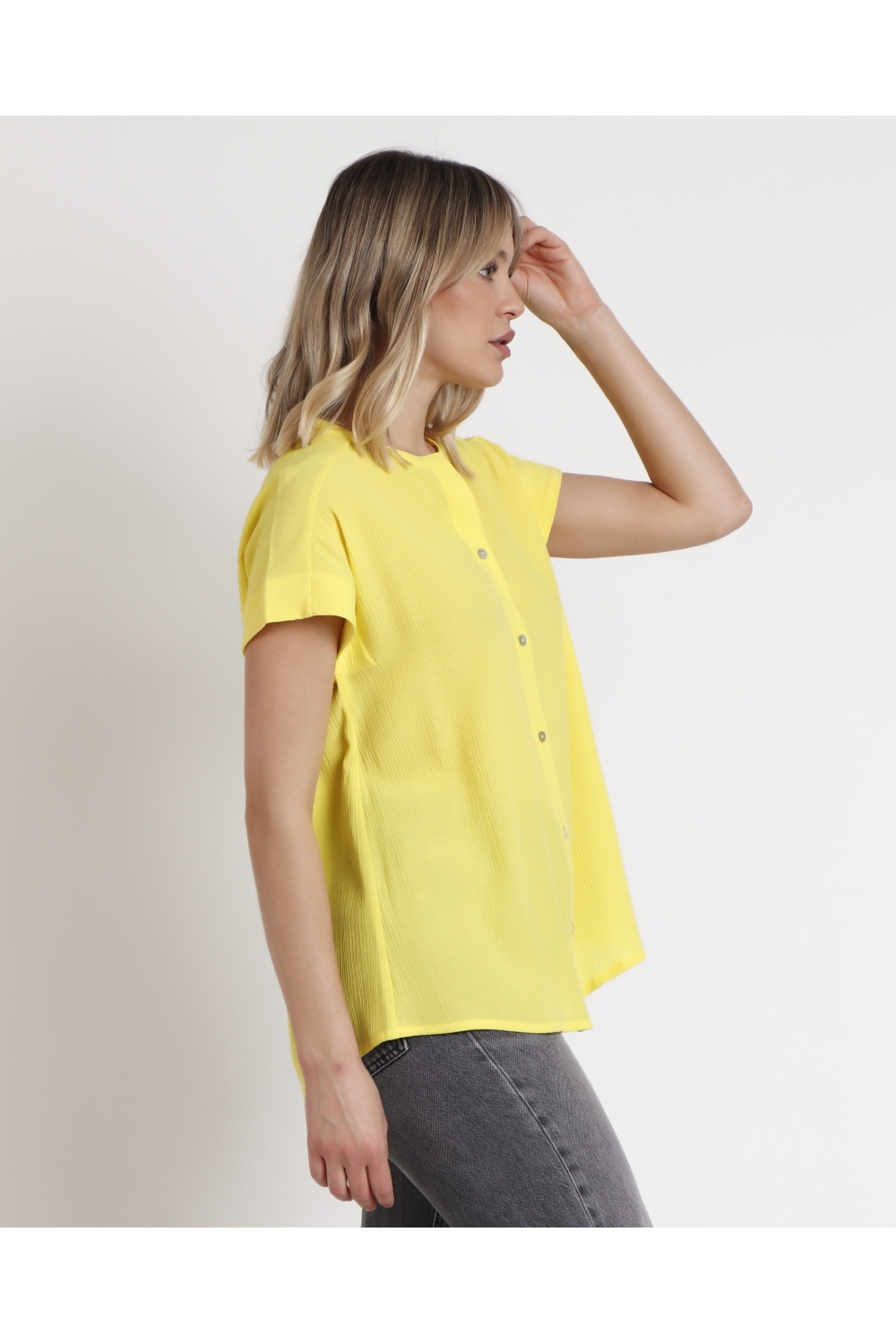 * Camisa abierta de tela, de manga corta y cuello mao.