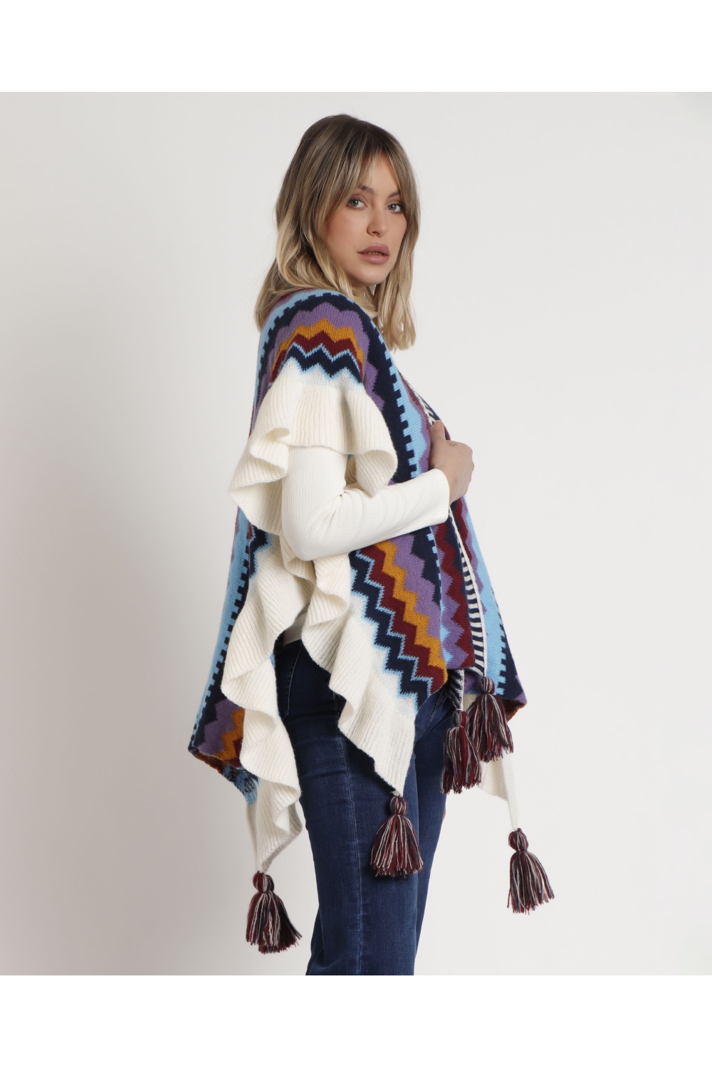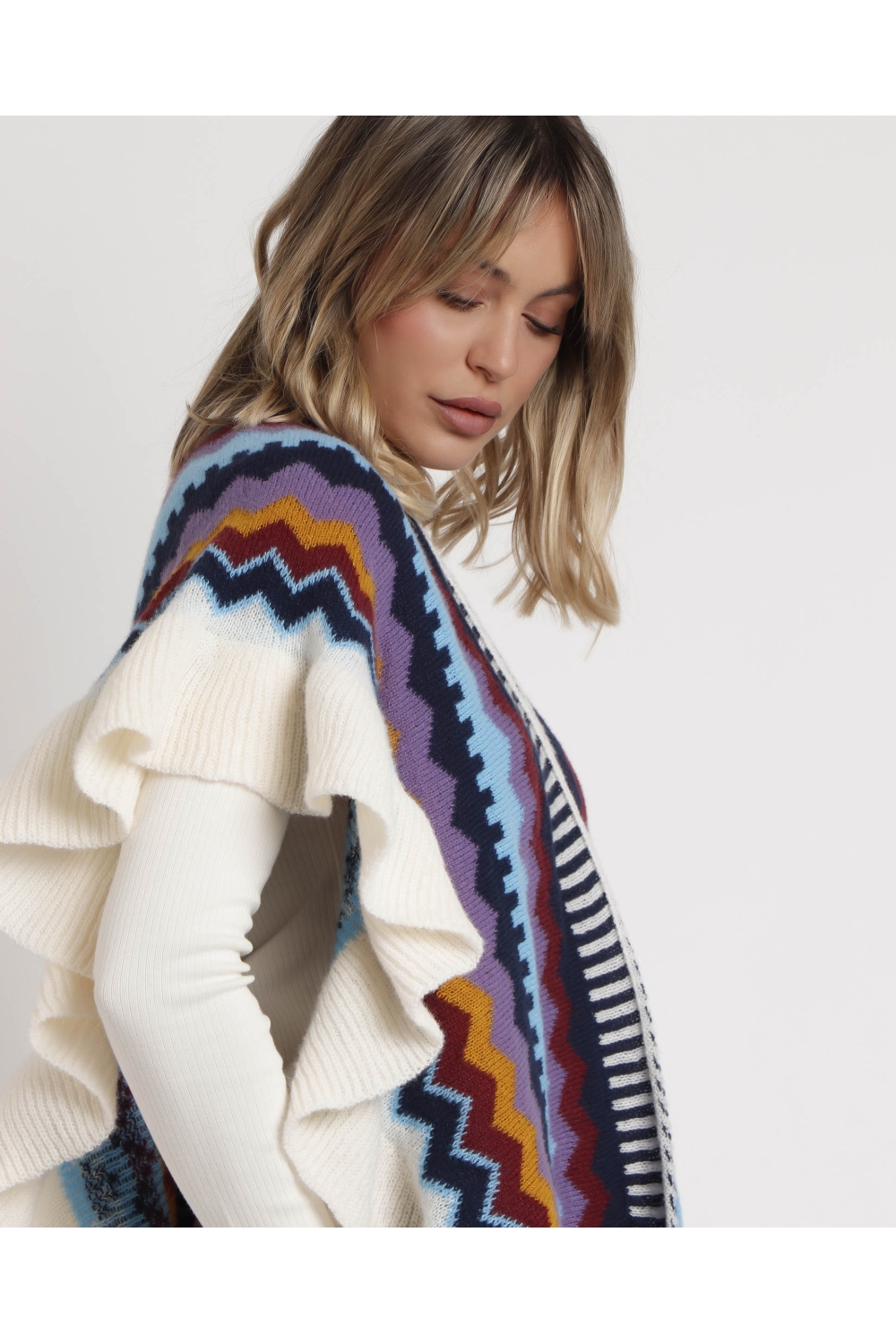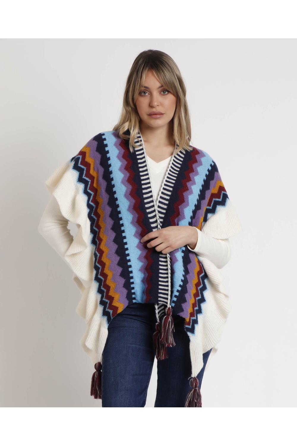 ADMAS Chal de Punto Volantes para Mujer MULTICOLOR