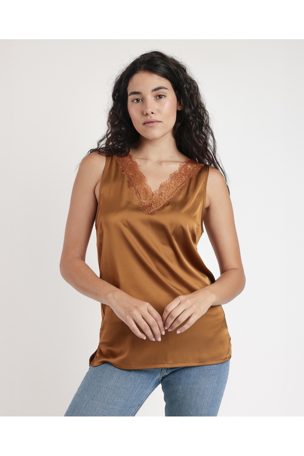 ADMAS Camiseta Sin Mangas Satin Lace para Mujer COBRE