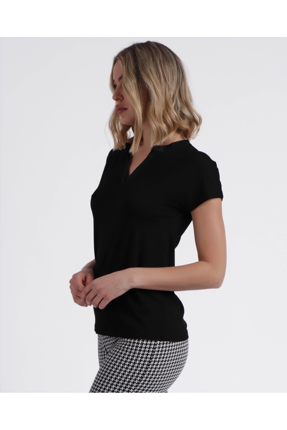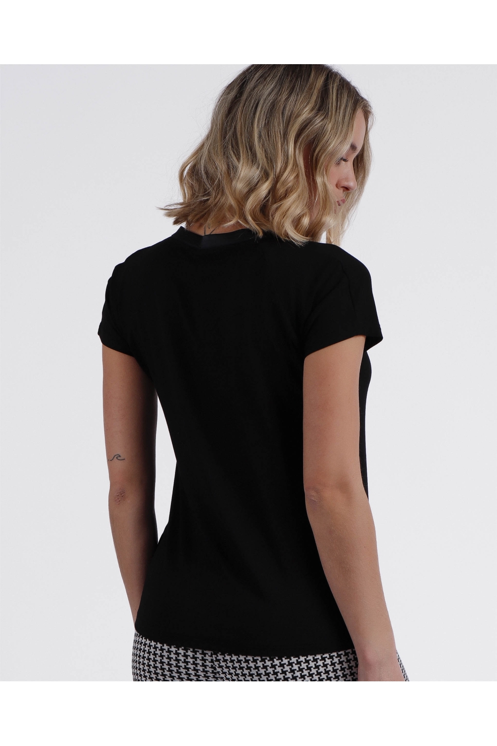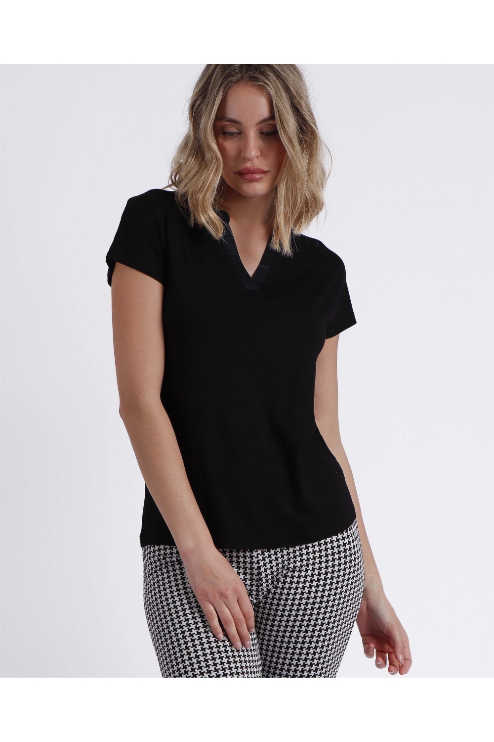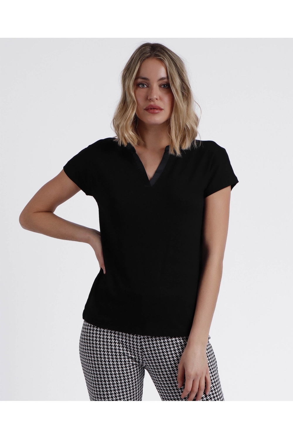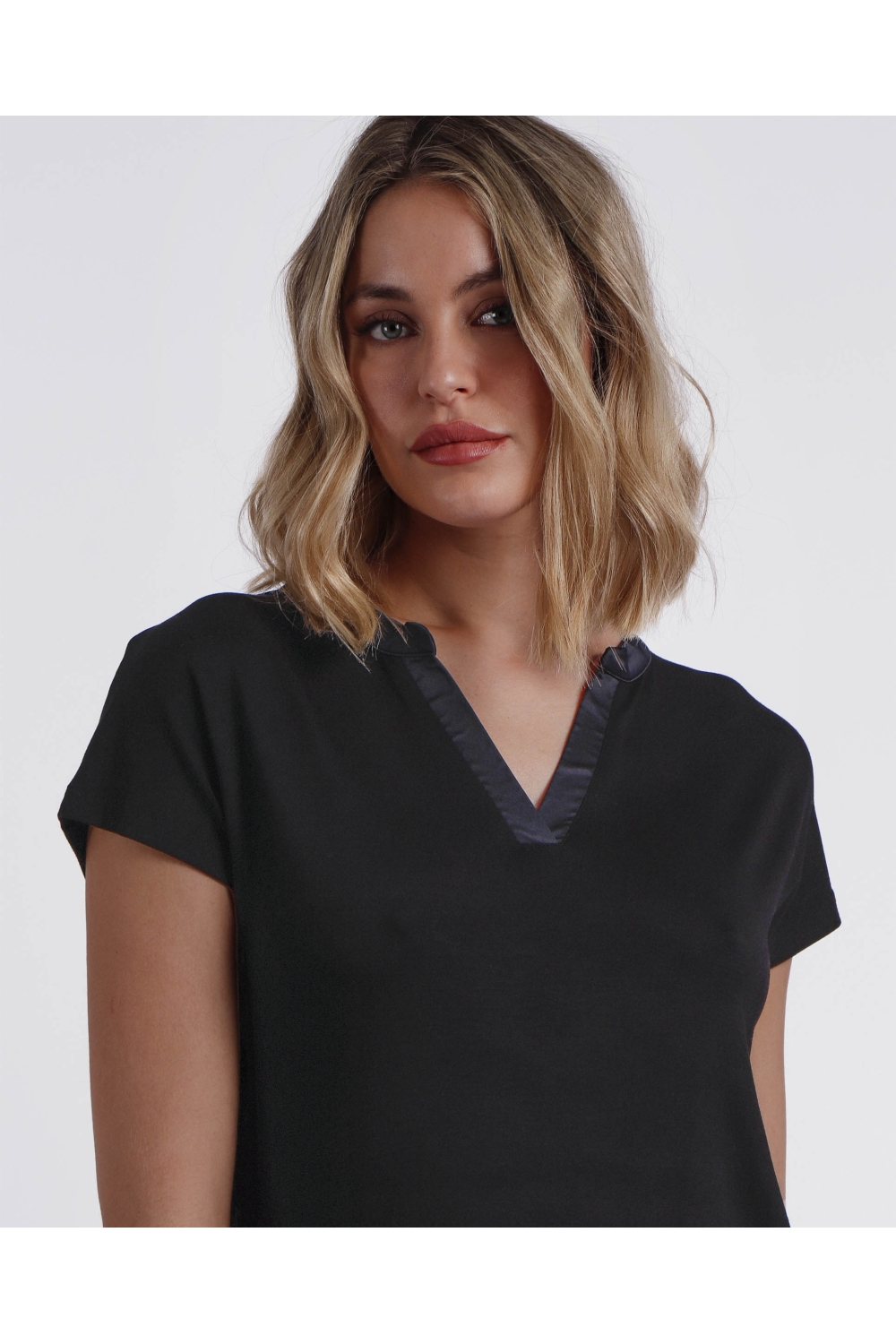 * Camiseta de punto de viscosa, de manga corta y con escote con detalles de raso.