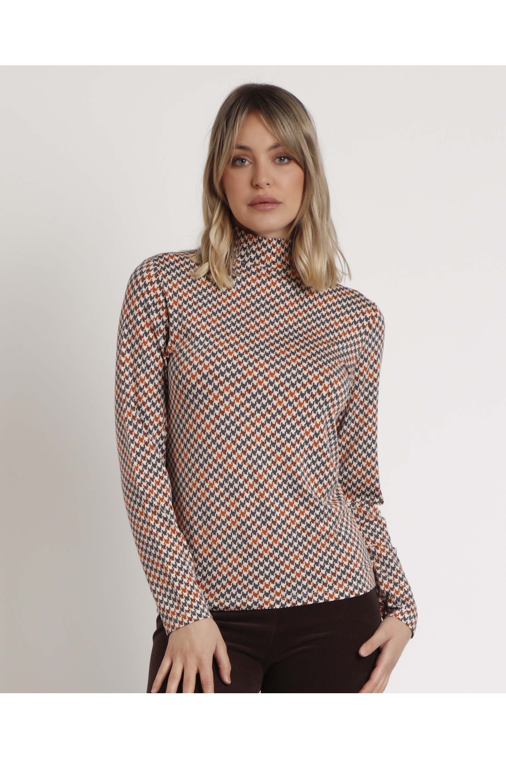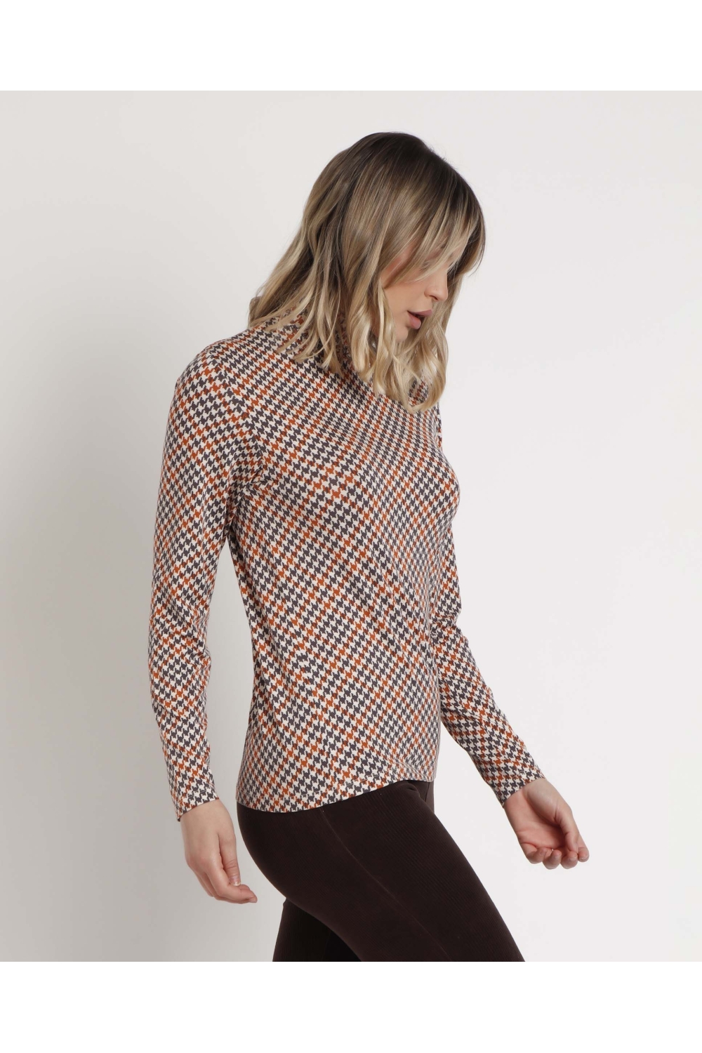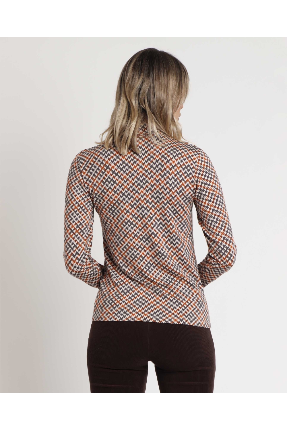 * Camiseta de punto estampado, de manga larga y cuello alto, en color camel.