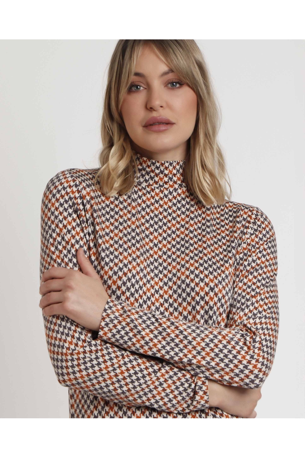 ADMAS Camiseta Manga Larga Houndstooth para Mujer CAMEL