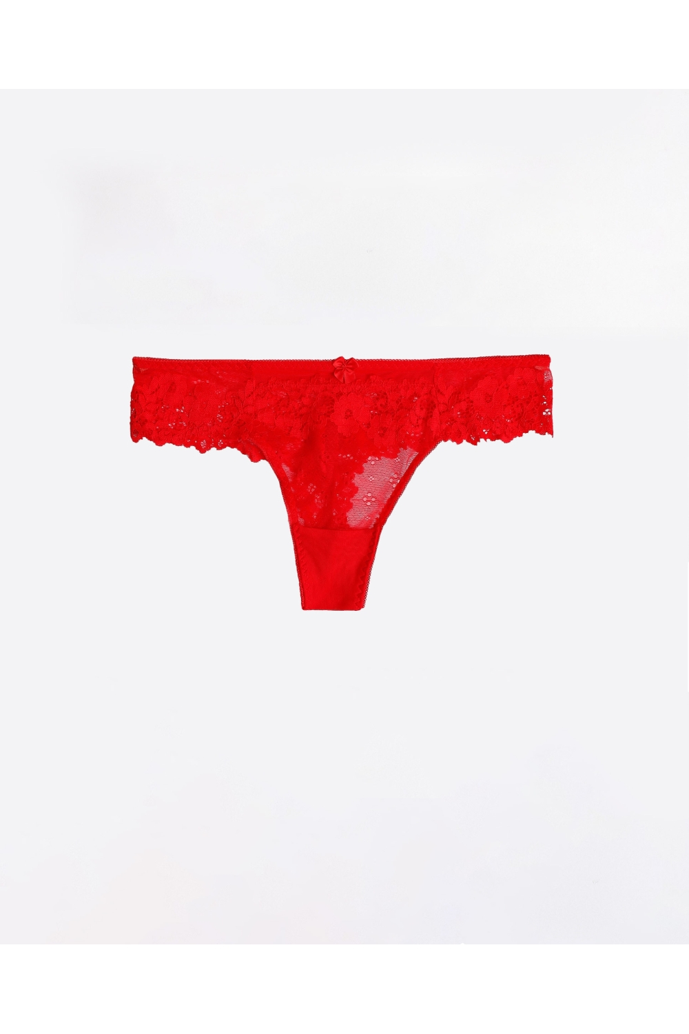 * Tanga para mujer con elegantes detalles de encajes, en color rojo.