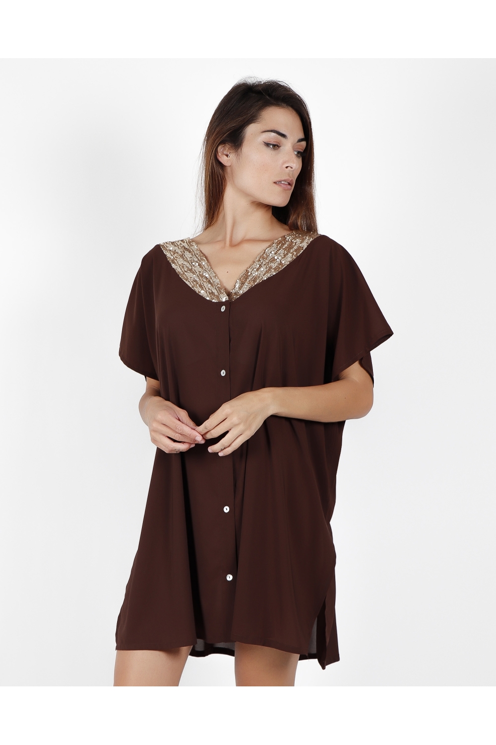 * Vestido de playa para mujer, abierto con detalles de lentejuelas en el escote