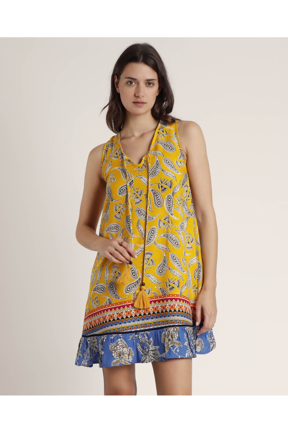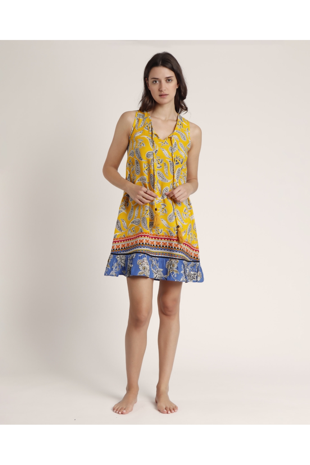 ADMAS Vestido Sin Mangas Hippy Beach para Mujer AMARILLO