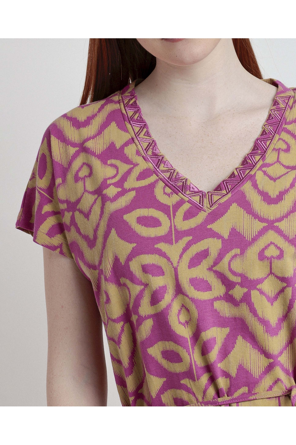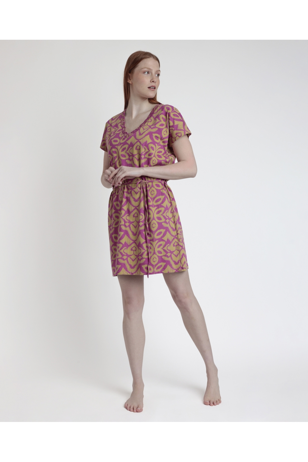 ADMAS Vestido Manga Corta Pink & Green para Mujer MORADO