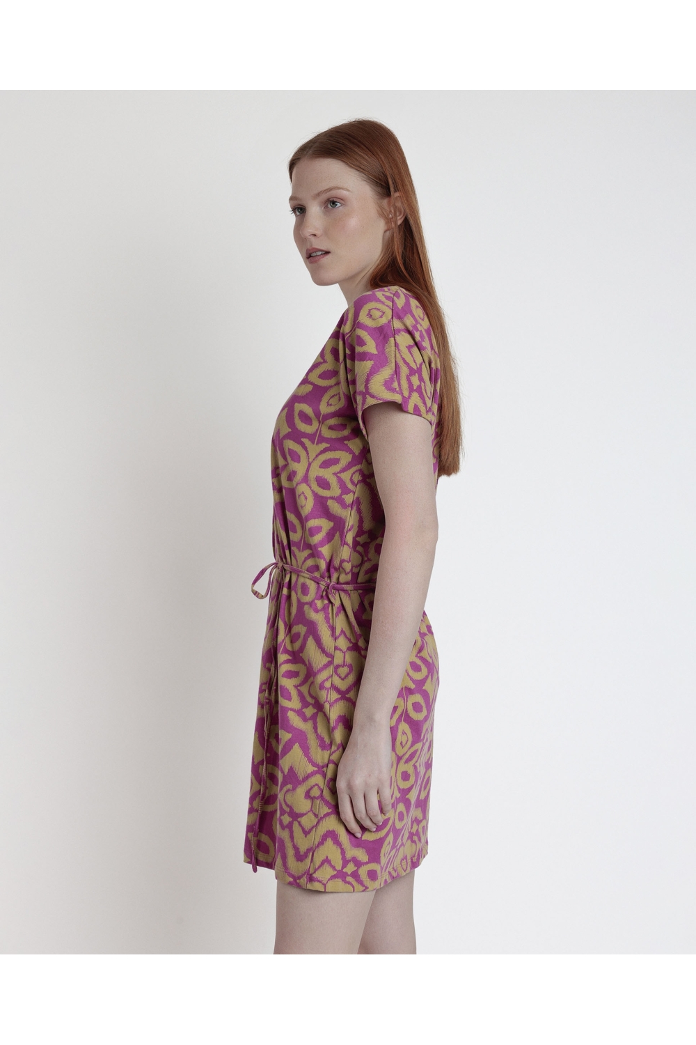 * Es un vestido corto de estampado muy veraniego, con cinturón en el mismo tejido .